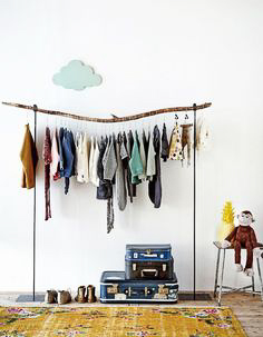 Qu’elle soit sur pied ou suspendue, utilisez une branche d’arbre pour suspendre vos vêtements !
