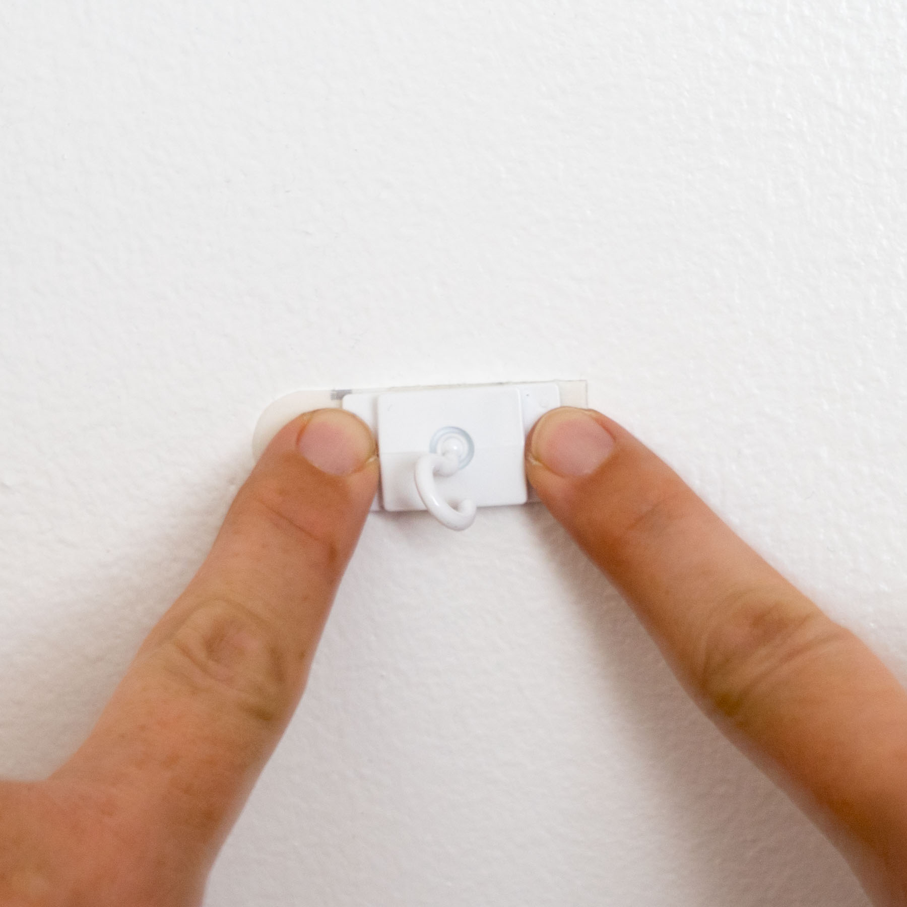 - Collez le crochet au plafond en appuyant fermement pendant 30 secondes