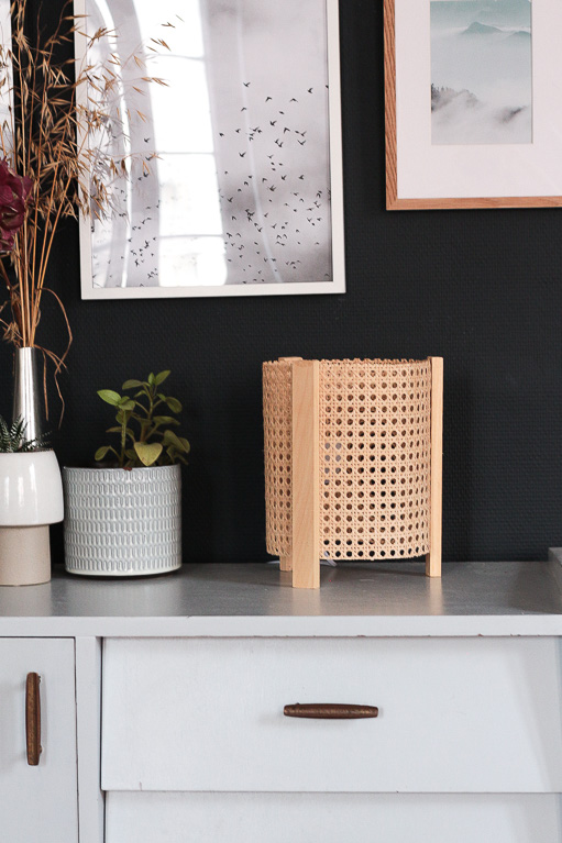 Pour la petite histoire, à l’origine j’avais imaginé une structure différente pour ce DIY lampe cannage. Mais parfois lorsqu’on pense un DIY, on se rend compte en le réalisant que cela ne fonctionne pas. Plusieurs de mes DIY sont ainsi nés d’essais/erreurs ! Pour ce DIY lampe cannage, J’ai donc changé d’idée en cours de route, en utilisant certaines sections de bois de mon projet initial pour faire les pieds. Et au final j’aime bien le petit look de ce « deuxième essai », presque plus que le premier !