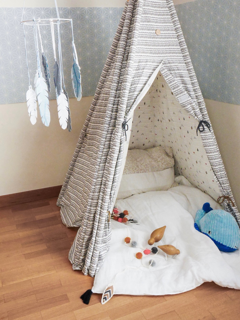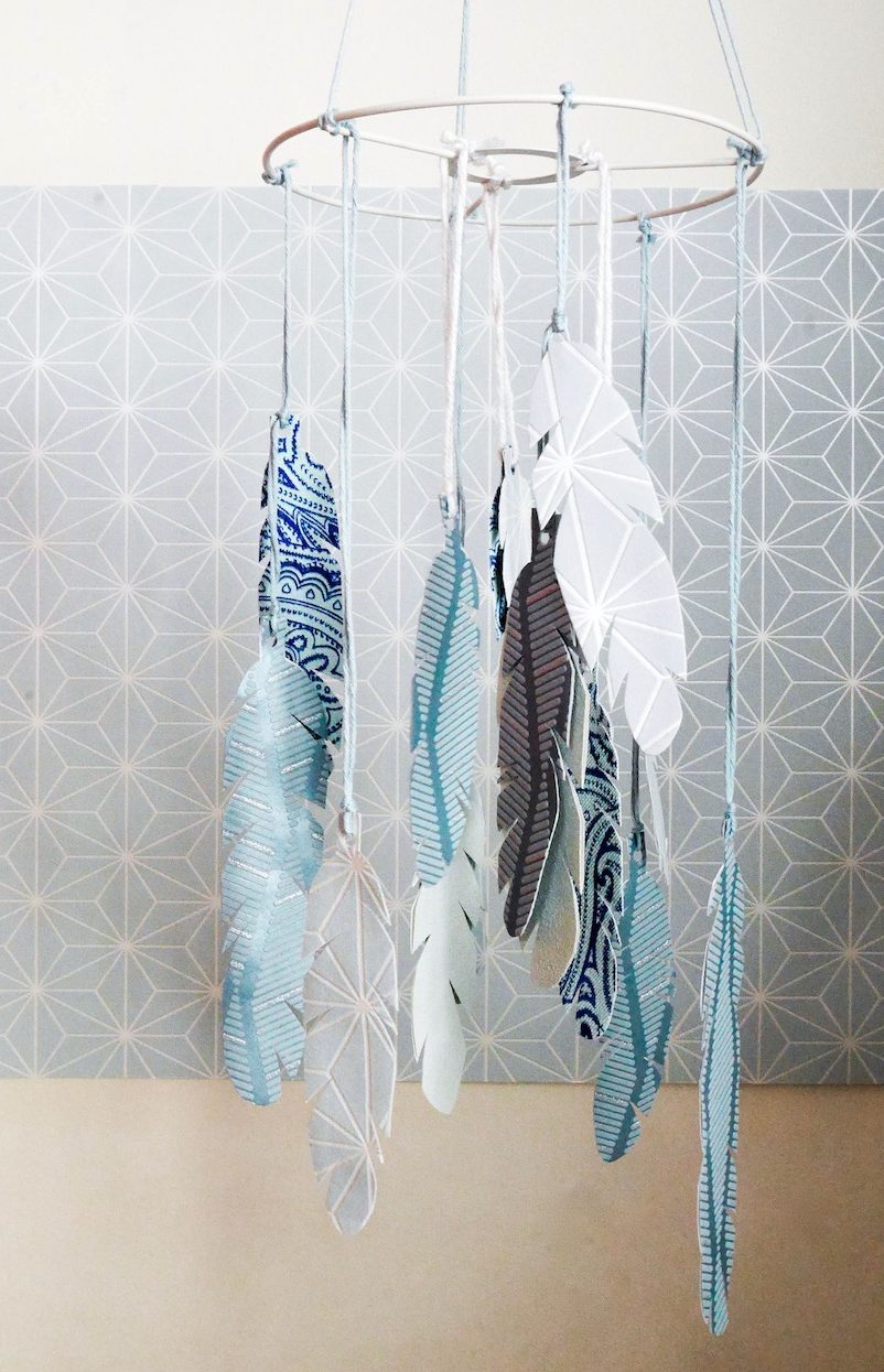 Pour l’heure, je laisse donc la main à Clémence qui a réalisé un mobile pour enfant à partir de papier peint.