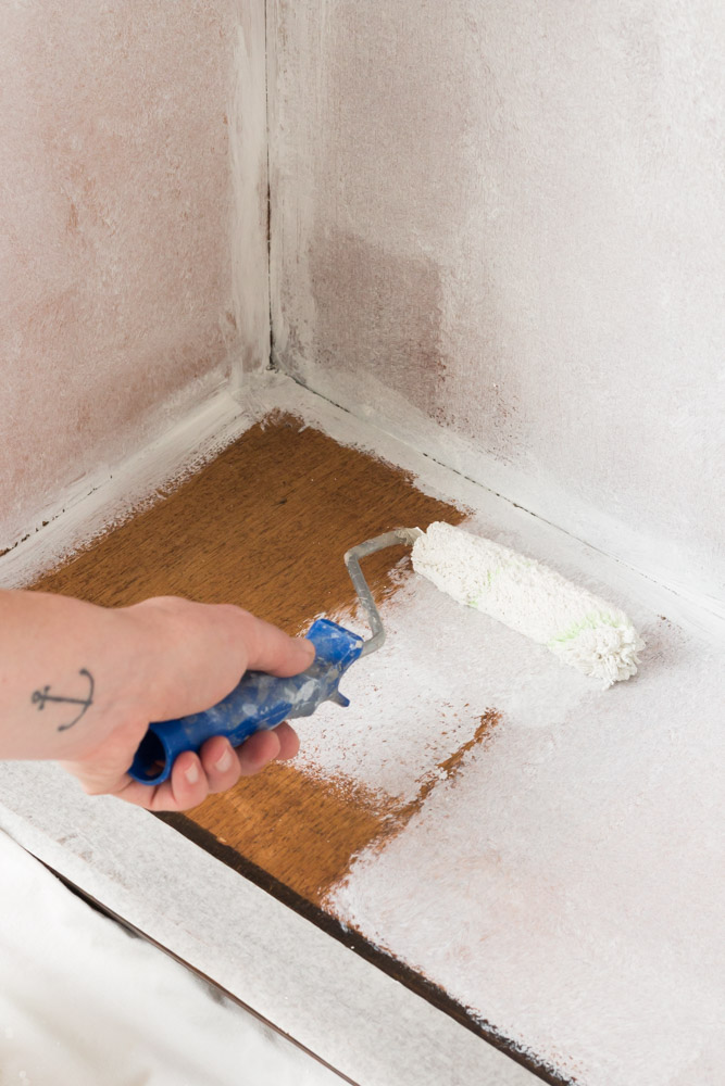 Avant de peindre l’intérieur du meuble et les étagères, je les ai poncé au grain 120. Si vous souhaitez en savoir plus sur le ponçage d’un meuble, je vous disais tout il y a quelques temps dans cet article !