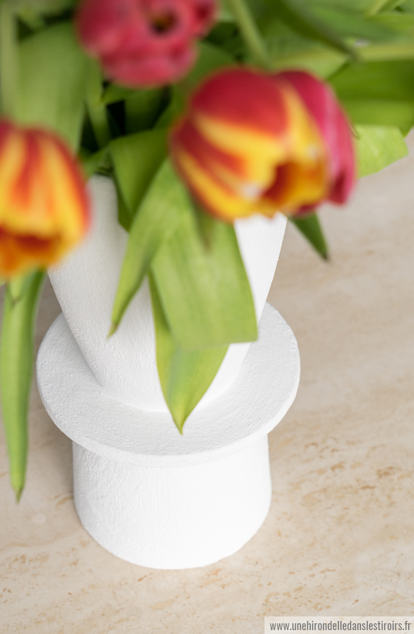 Je suis très contente du rendu, et je l’utilise également dans l’autre sens en tant que cache pot pour des petites plantes. Si vous vous lancez dans ce DIY vase diabolo, n’hésitez pas à me partager le résultat sur Instagram :)