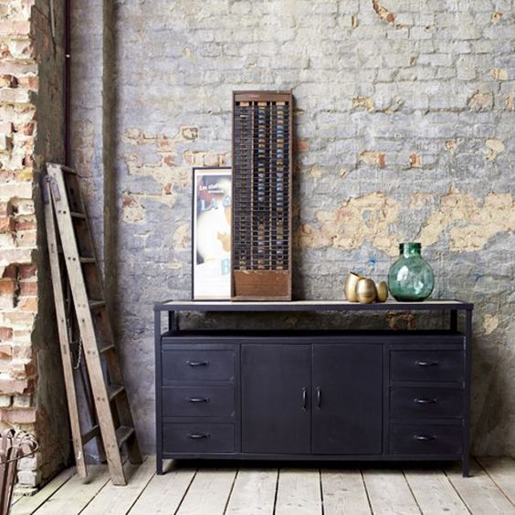 Enfin, si vous appréciez les atmosphères industrielles, le buffet en métal est fait pour vous. Idéal pour créer une ambiance atelier dans la maison, il apporte indiscutablement beaucoup de caractère à une déco.