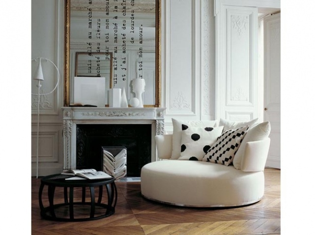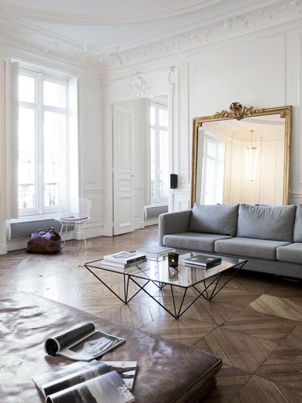 idée déco : un grand miroir ancien dans la pièce à vivre