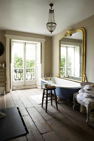 Au dessus de la baignoire, une idée déco avec un miroir ancien qui apporte magesté à la pièce !