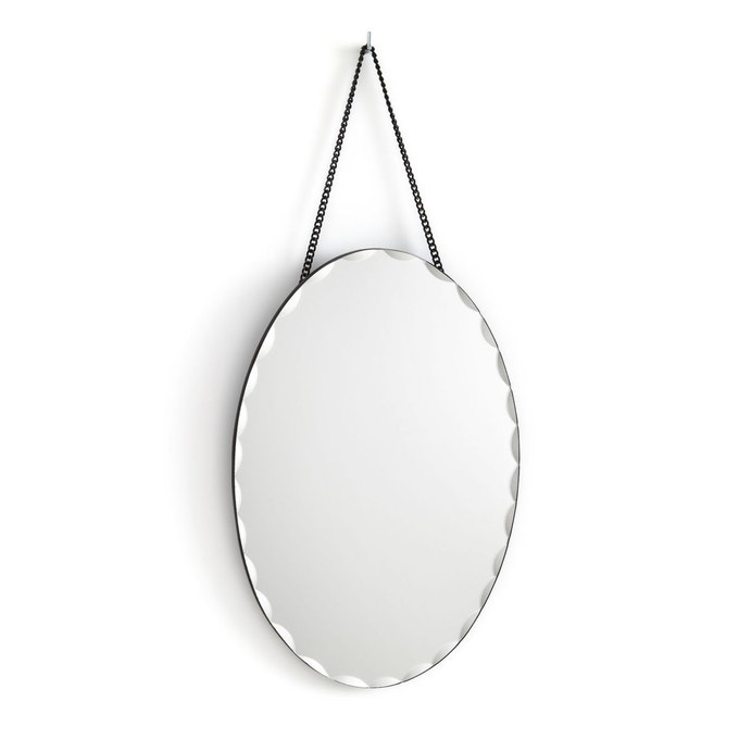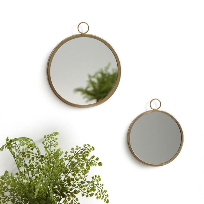 Lot de 2 bougeoirs en verre mercurisé, 39.99 € / Miroir biseauté à suspendre, 31.99 €