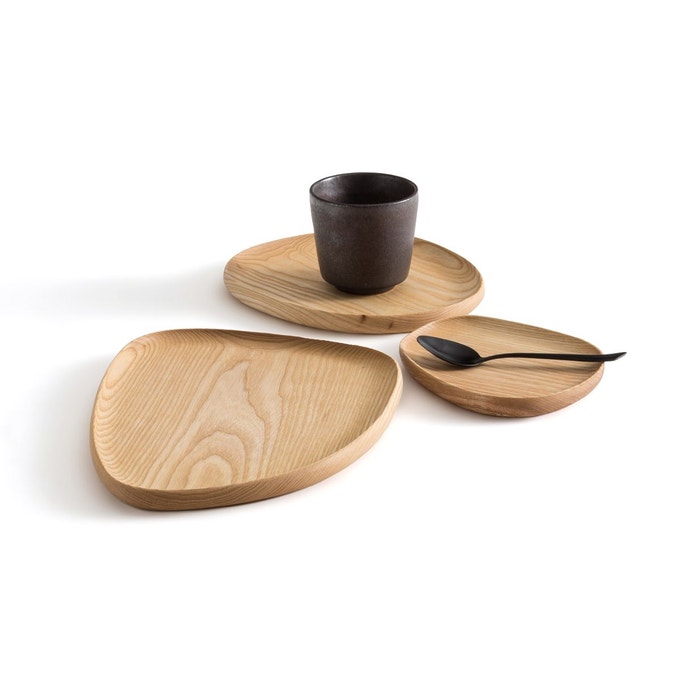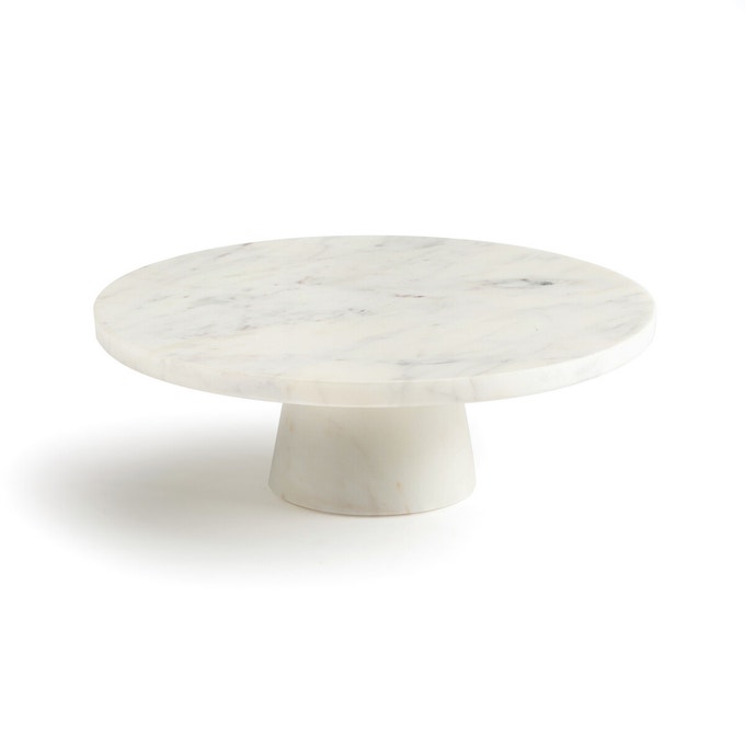 Serviteur à gateaux en marbre blanc, 49.99 € / Trio de plateaux en frêne, 47.20 €