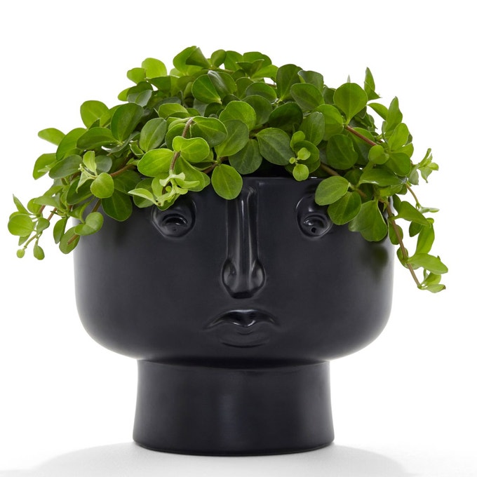 Cache pot visage, 49 € / Vase céramoque émaillée, 49 €