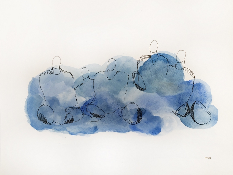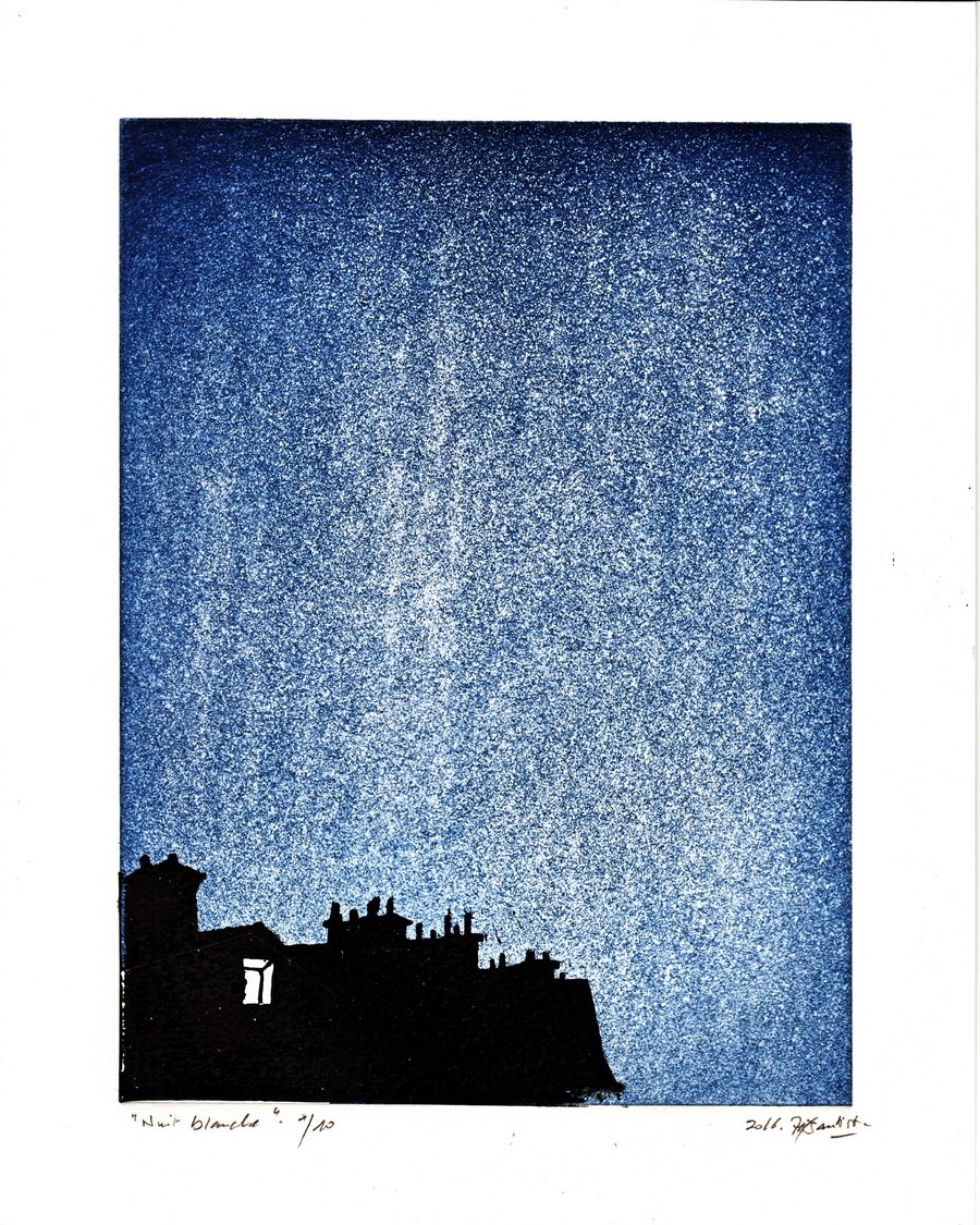 En ce moment ma corde sensible, ce sont les atmosphères orageuses et bleutées, les œuvres où les élans lumineux se mêlent à d’autres plus obscurs, j’aime ce qui est suggéré, poétique, incertain. J’avais donc envie d’une galerie qui mette à l’honneur ce mélange de douceur et de force, de délicatesse et de dureté. J’ai choisi des photographies, mais aussi des aquarelles, des lithographies, figuratives comme abstraites, des œuvres que j’adorerais avoir chez moi et que vous aurez je l’espère plaisir à découvrir !