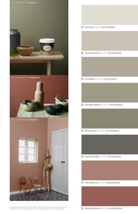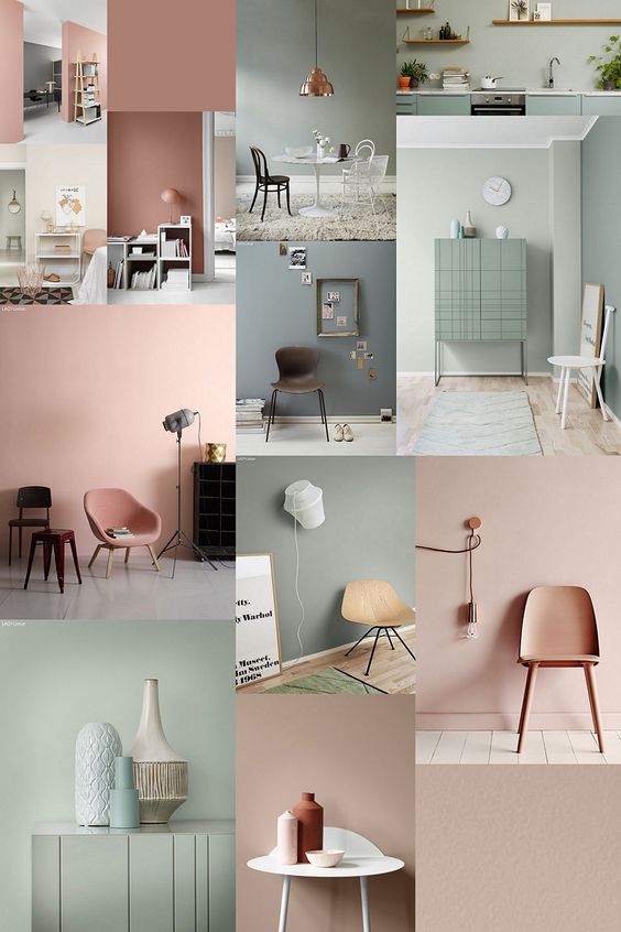 Le rose se marie particulièrement bien avec les teintes de vert. Ce sont en effet deux couleurs opposées sur la roue chromatique, et donc complémentaires. Associés à des vert doux presque grisés, les roses apportent une atmosphère fraiche dans la déco. Dans un autre style, les kakis se marient également particulièrement bien à mon goût à des roses plus sombres.