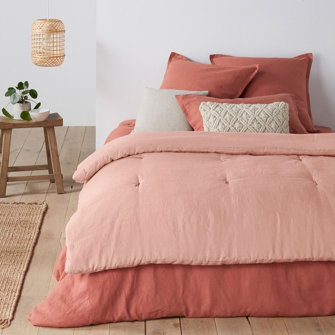 En dehors de l’option « peindre un meuble en rose », les textiles sont un bon moyen de jouer avec cette couleur dans un intérieur. Canapé, fauteuil, linge de lit, ou encore coussins ou tapis, jouer sur les matières selon l’effet désiré. Sur du velours, le rose devient chatoyant, tandis que sur du lin il se fait plus discret.
