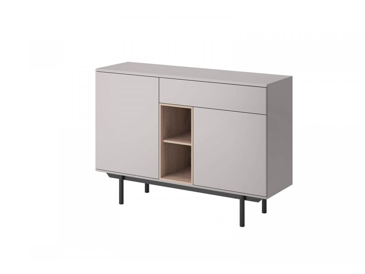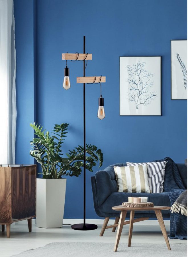 Lampadaire bois et noir / Buffet 2 portes gris / chaises noyer, lot de 2