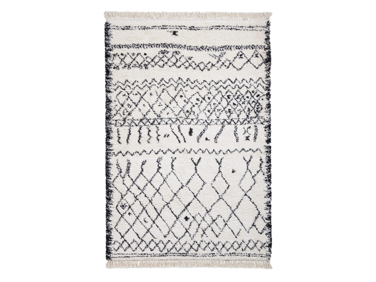 Lampadaire blanc / Tapis berbère / Miroir arc en métal / Commode 6 tiroirs / Pouf gris