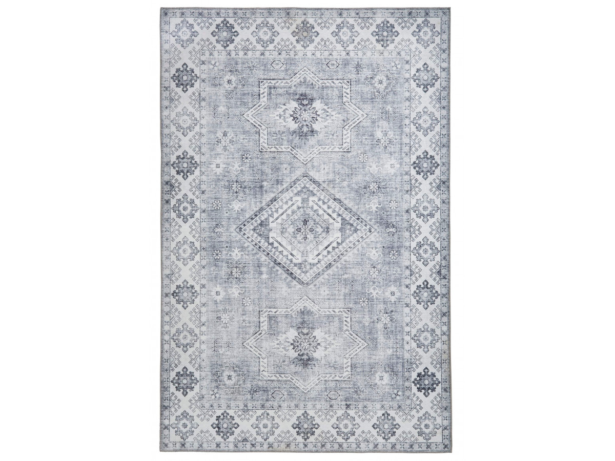 Pour le salon, en plus du gris et du crème, j’ai choisi des teintes de rose fané et d’ocre/bois. Un grand canapé moelleux gris clair (avec un méridienne, indispensable pour moi qui m’assois toujours les jambes étendues pour me détendre), un pouf « tricot » pour apporter du relief, et des coussins beiges qui amènent un motif discret. Pour le tapis, gros coup de cœur pour ce modèle oriental à l’aspect délavé ! L’astuce pour le choisir, c’est d‘être généreux quant à sa taille. L’idée est qu’elle soit supérieure à celle du canapé.