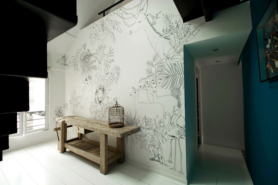 Un décor de jungle tropicale, dans l’entrée d’un appartement aux Tuileries