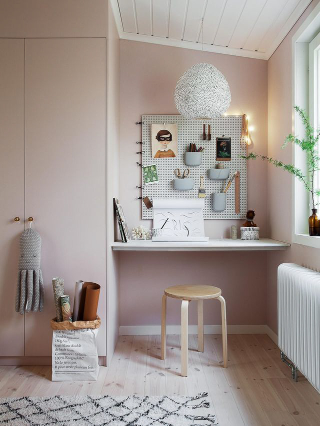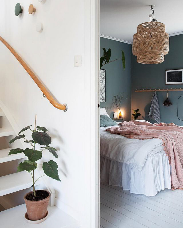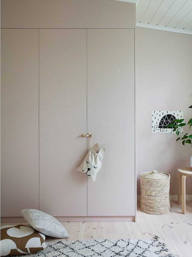 Dans les pièces de vie, c’est le blanc qui est mis à l’honneur, dans la pure tradition des intérieurs scandinaves. Mais du côté des chambres, la couleur s’invite et les teintes sont subtilement travaillées. Gros gros coup de coeur pour la chambre parentale ! Les propriétaires ont su illuminer cet écrin gris par un travail sur les accessoires et le linge de lit, et le résultat est vraiment très joli je trouve ! Un écrin reposant tout en ayant beaucoup de caractère.