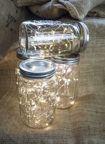 - Pour créer des points d’éclairage complémentaires, vous pouvez aussi disposer une guirlande lumineuse goutte dans une dame jeanne, des bocaux de récupération ou encore sous cloche. Effet garanti ! Il existe également des formes lumineuses comme des étoiles ou des cercles, parfaites pour habiller un mur.