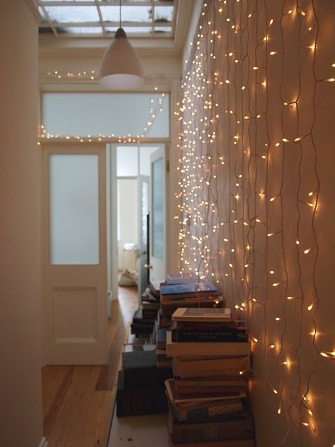 - Soulignez les éléments de la pièce avec une guirlande : Les guirlandes lumineuses sont du plus bel effet lorsqu’elles suivent les lignes de la pièce ou d’un meuble. Disposez-les par exemple sur le dessus du manteau de cheminée, autour d’une porte, ou encore enroulée autour d’un poteau ou d’une rambarde d’escalier. Et pour un maxi effet, vous pouvez aussi oser le rideau lumineux sur un mur !