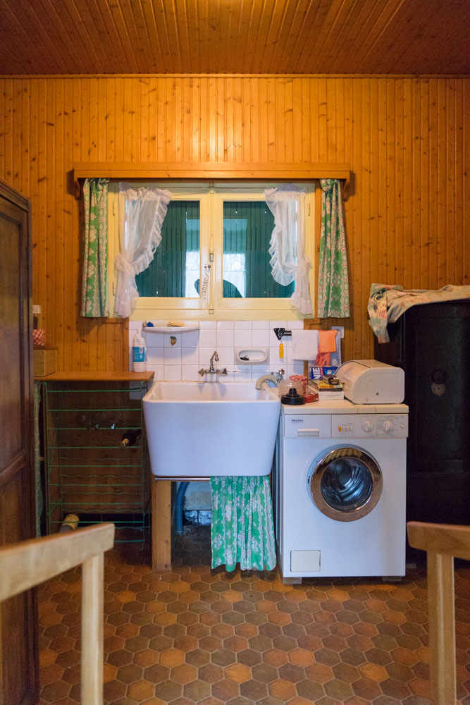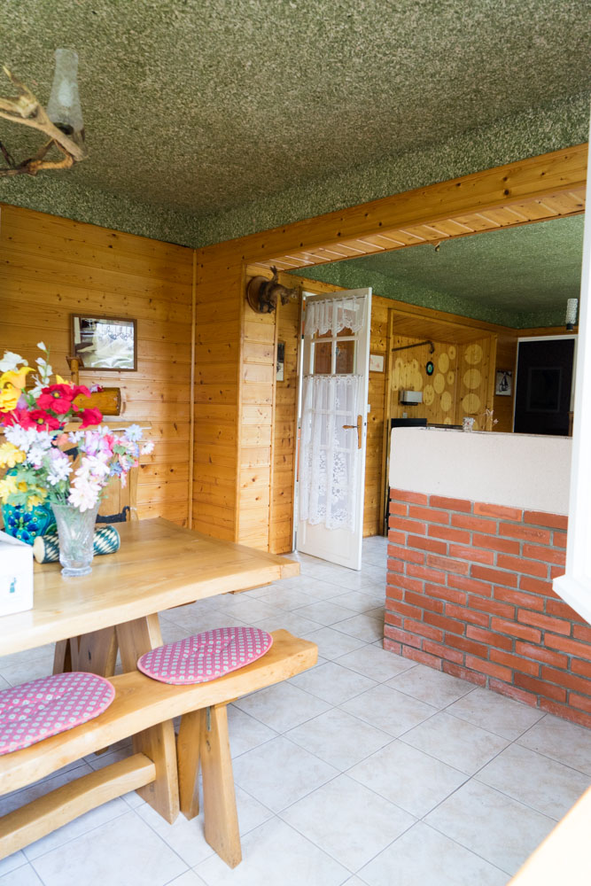 En ce qui concerne la maison, elle fait donc 85 m² habitables, auxquels il faut ajouter un garage et une petite remise de presque 25 m² en tout. La maison est de plain pied, les combles ne sont pas vraiment aménagés ni aménageables (j’aimerais les exploiter un jour si j’ai le budget mais pour l’instant ce n’est pas la priorité :) ). Mais ils comportent tout de même une petite pièce un peu plus aménagée sous une partie des rampants qui peut servir de chambre d’appoint en mi saison, un petit bonus bien pratique ! Dans ces 85 m², on trouve une entrée (mal placée), un wc, un salle de bain, un double séjour, une cuisine, une buanderie et une pièce de « passage’ entre ces 2 dernières.