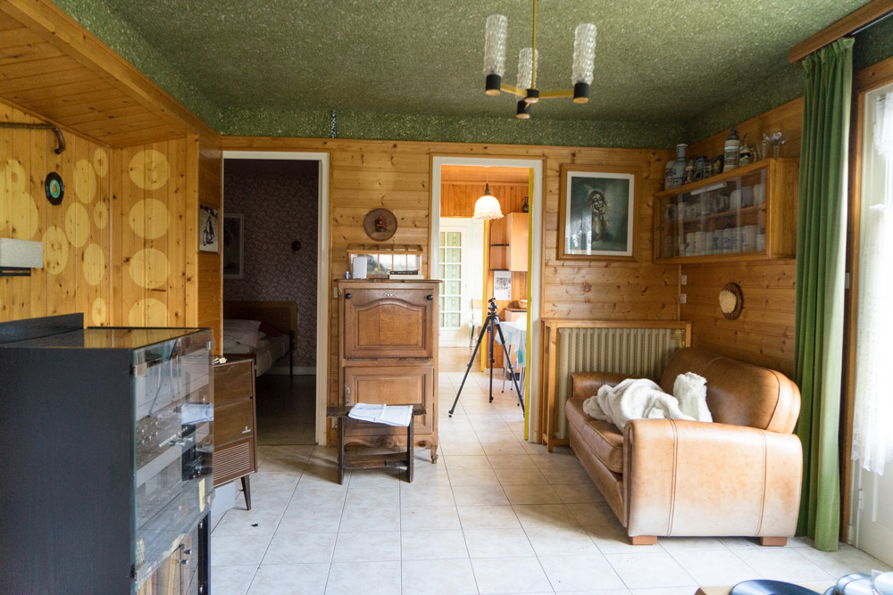 Pour être honnête, j’ai été à peu près aussi terrifiée qu’enthousiasmée par cette visite ! Mais au delà de la décoration TRÈS chargée – lambris absolument partout, plafond en polystyrène vert, écureuils empaillés – et de l’ampleur des travaux, j’ai été séduite par ses allures de petite maison îlienne, le potentiel de ses volumes et de son jardin. J’ai la chance de pouvoir me projeter très facilement, j’ai donc fait quelques croquis pour mettre en forme mes idées et ma vision des choses, fait une première estimation du budget travaux et dans mon cœur c’était déjà la mienne ! Bon, ensuite il a fallu quelques mois de démarches pour arriver à l’achat, et finalement c’est fin janvier que j’ai enfin eu les clefs !