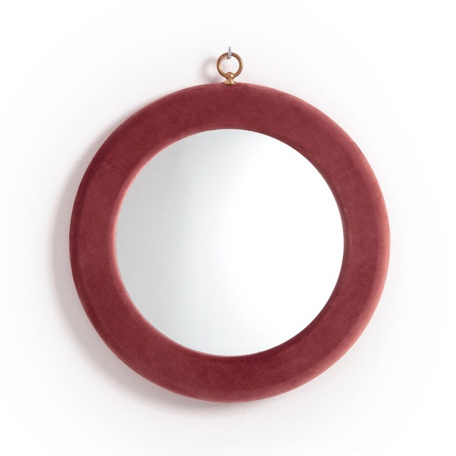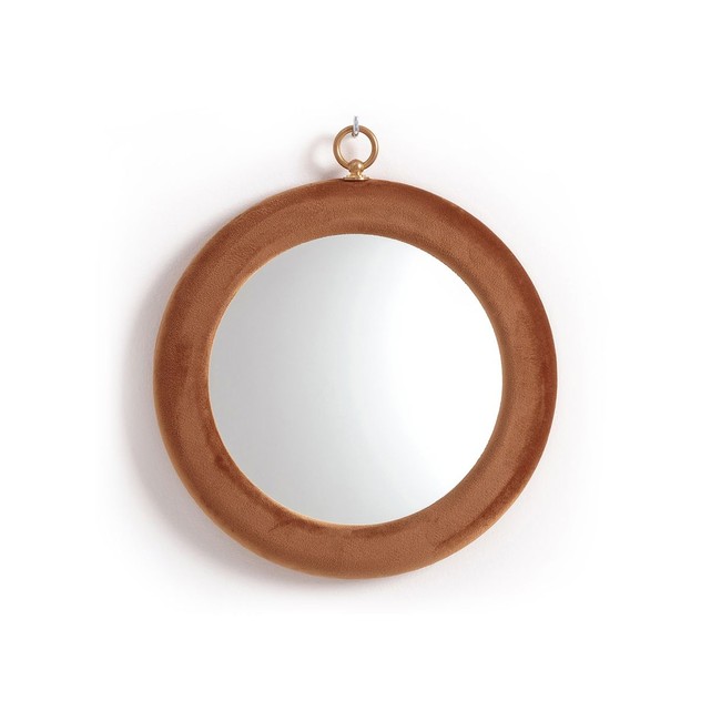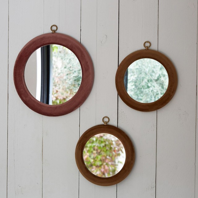 Miroirs ronds en velours, petit modèle noisette et grand modèle bois de rose