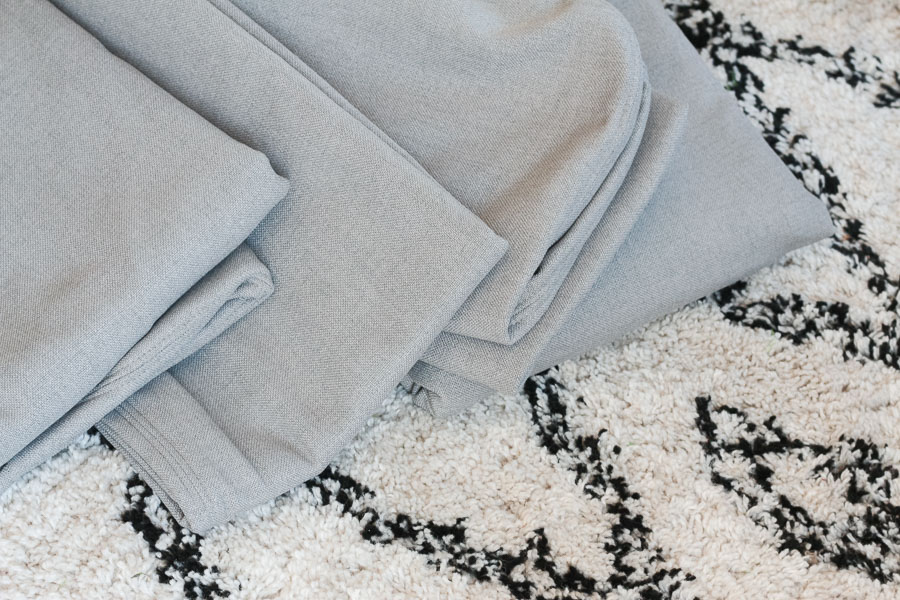 Après pas mal d’hésitations (pour ceux qui me suivent sur instagram, je vous avais d’ailleurs fait participer :) ), j’ai finalement opté pour un gris doux moyen, le light grey de la game Lido. C’est un tissu résistant et facile à entretenir, et qui ne retient pas du tout les poils de chats. J’aimais beaucoup la trame du tissu, et j’ai opté pour une couleur neutre afin de pouvoir switcher facilement la déco en changeant les accessoires. J’ai beaucoup hésité avec le velvet petrol, à gauche sur la photo ci dessous, un velours bleu canard absolument sublime ! C’est un choix plus osé , mais si on a déjà une housse neutre je le trouve idéal pour alterner, et apporter une touche de chaleur en hiver notamment. Je le garde en tête !