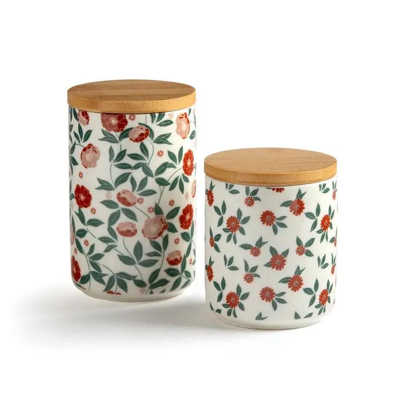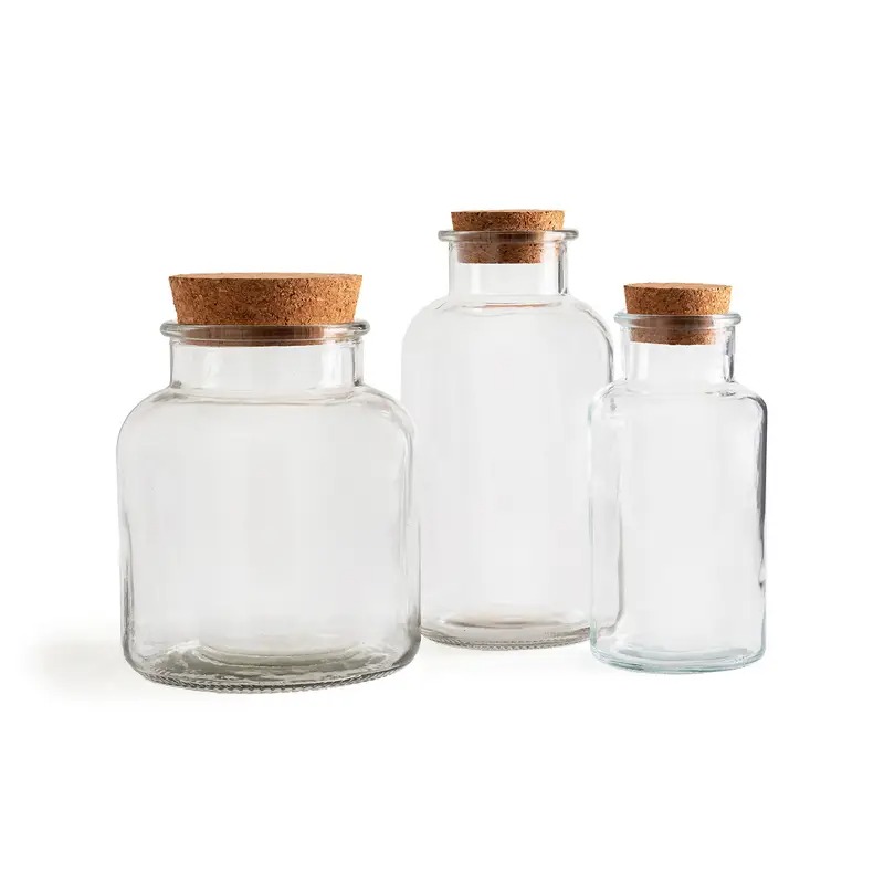 3 bocaux verre et couvercle liège,-50% / Bocal en céramique 1000L, -15% / Lot de 2 pots de conservation, – 15%