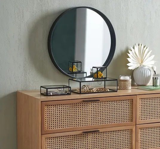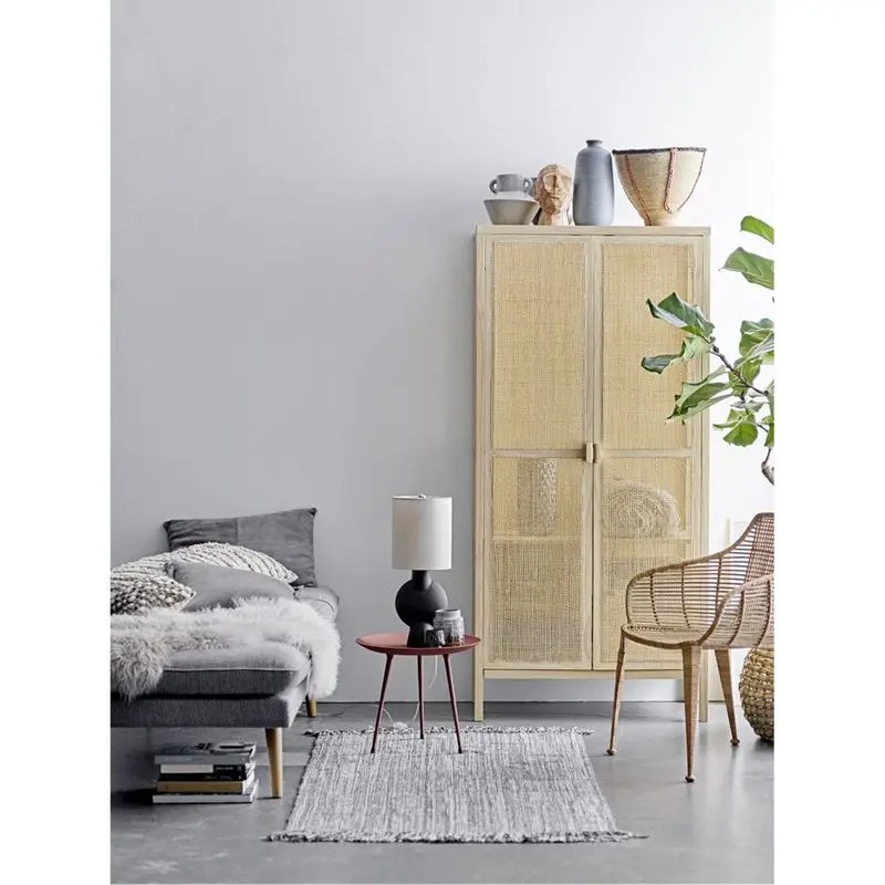 Armoire portes vitrée bois et métal, -25% / Armoirette murale métal noir et verre armé, -38% / Armoire bois et cannage, -10%