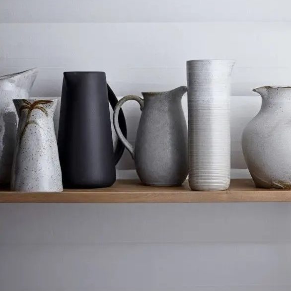 Pichet en grès noir, -15% / Pichet en grès à pois bleu, -15% / Pichet en grès à rayures, -15%