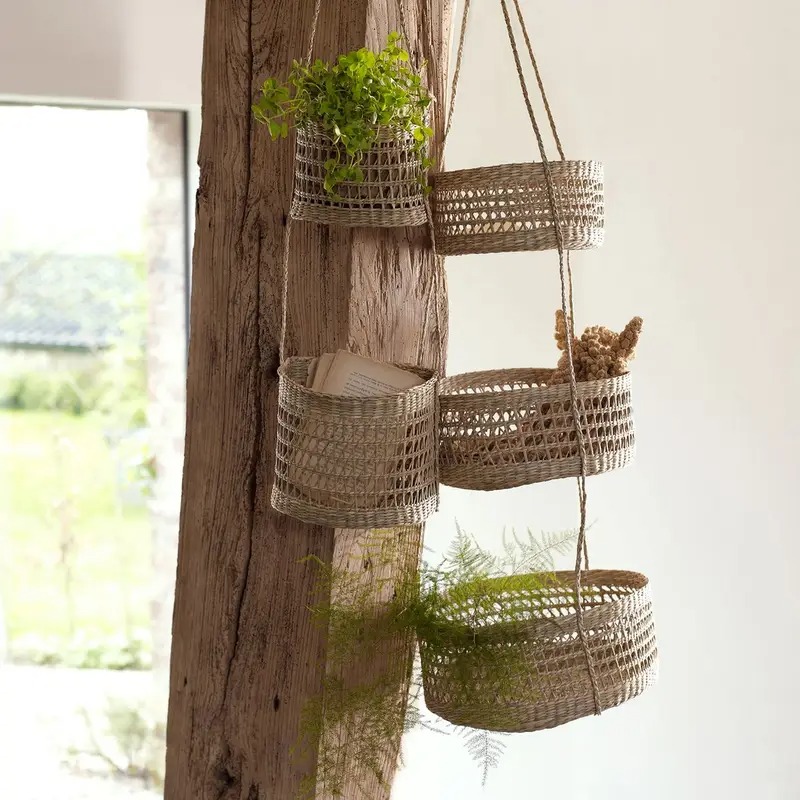Panier tressé à suspendre, -20% / Paniers suspendus en herbier, -35%