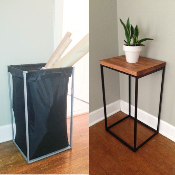Une autre manière de personnaliser ses meubles, c’est tout simplement en les détournant de leur fonction première ! Les étagères à épices par exemple peuvent être recyclées en étagères à livres. Si vous êtes adeptes du DIY, vous pouvez aussi pousser le détournement plus loin en transformant un plateau en miroir ou encore un panier à linge en table basse.