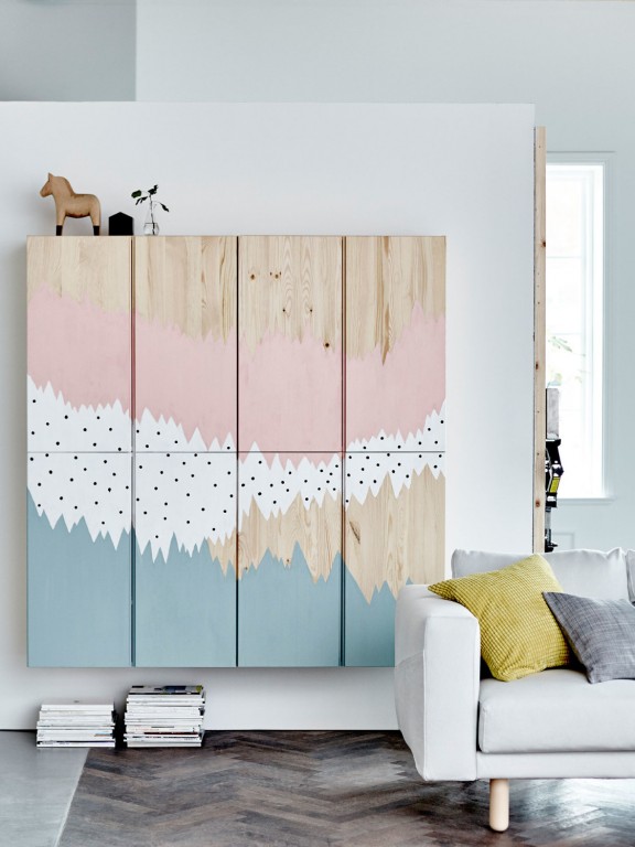 Quelques uns des meubles ikea sont proposés en bois brut. vous pouvez dans ce cas y appliquer la peinture de votre choix. N’hésitez pas à vous amuser avec les couleurs, en créant par exemple un dégradé entre les tiroirs, ou encore en misant sur des motifs !