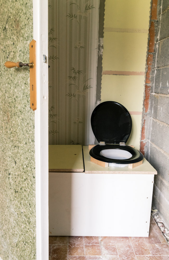 - Les WC : si il y a bien un élément à démonter le plus tard possible, ce sont les toilettes ! Pas besoin de vous expliquer pourquoi :) Et pour prendre le relais, j’ai fabriqué des toilettes sèches en faisant de la récup sur mon chantier !