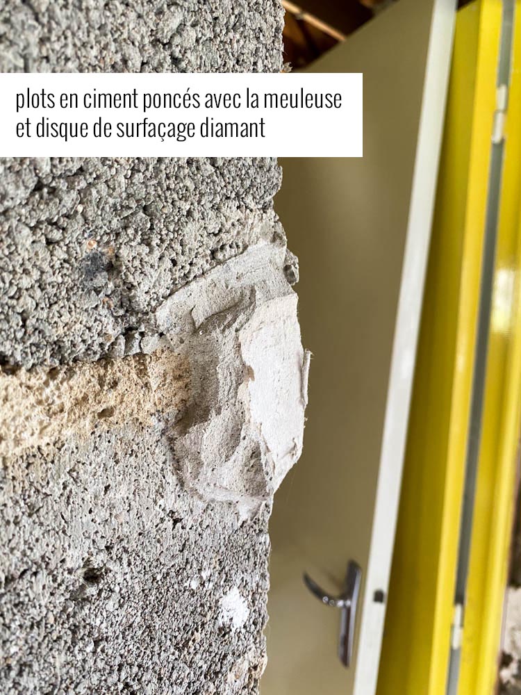 Mais elle m’a également rendue d’autres services ! Après avoir tenté sans succès d’ôter des plots en ciment sur tout un mur de parpaing (par différents moyens), je l’ai utilisé pour les poncer en y ajoutant un disque de surfaçage de ce type. C’est extrêmement puissant et efficace !