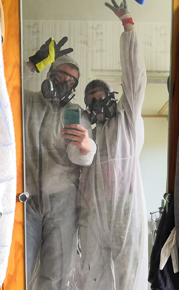 Je ne peux pas parler de démolition sans parler de sécurité : il est indispensable de vous protéger, et les gants ne suffisent pas ! Voici l’équipement que j’ai utilisé :