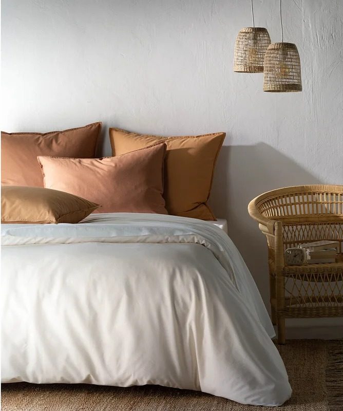 Housse de couette coton lavé, 25.50 € / Drap housse en gaze de coton, 25 € / Drap plat lin lavé, dès 28 €
