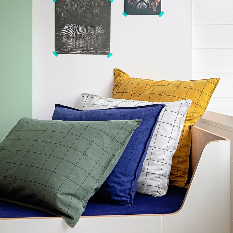 Taie d’oreiller fleurie, Cyrillus, 11.45 € / Taies d’oreiller à carreaux en coton bio, 12 €