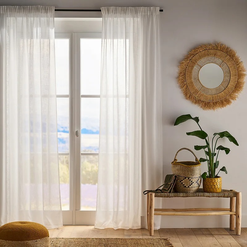 Voilage effet lin, à œillets ou galon fronceur, 15 €