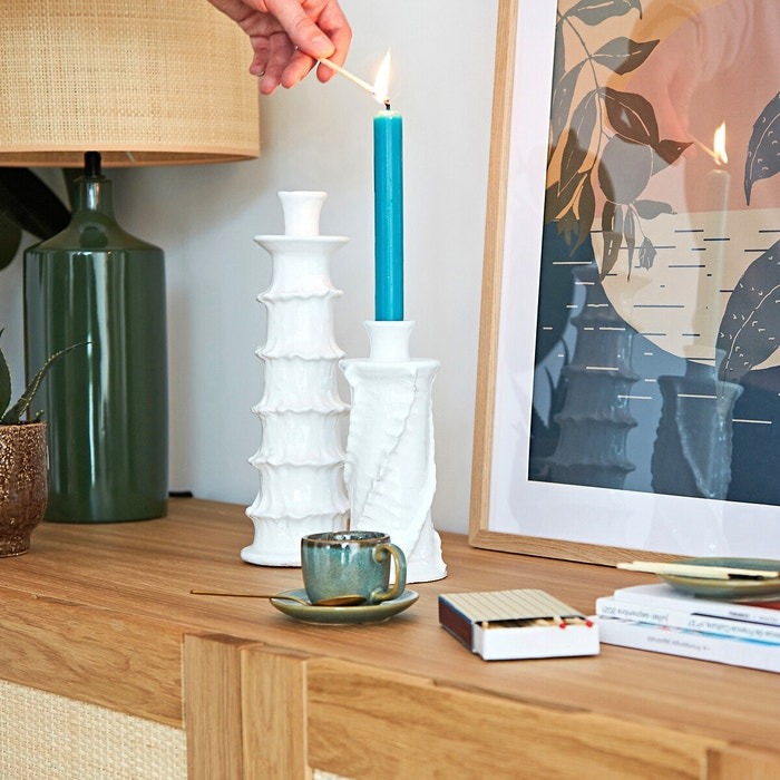 Vase en métal Bloomingville, -20%, 23.92€ / Bougeoir en terre cuite blanc, -45%, 18.15€