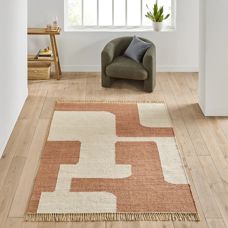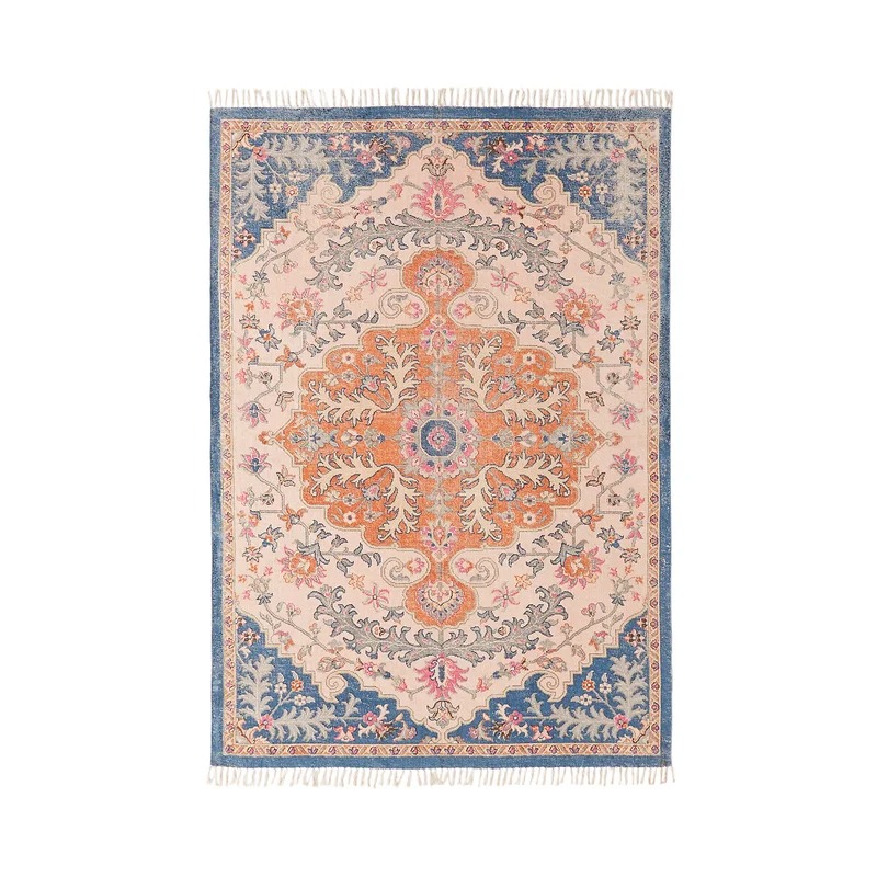 Tapis Kilim, -45% / Lampe à poser, – 25% / Panier en rotin tressé, -70%