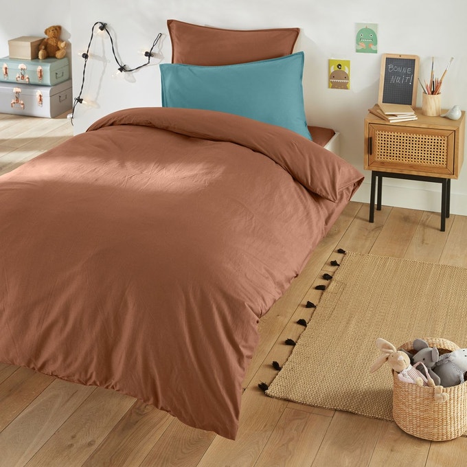 Lin lavé mais aussi chanvre lavé, je privilégie depuis longtemps ces matières naturelles et souvent plus responsables. En plus d’être agréables à l’usage, je leur trouve une esthétique incomparable. Unies ou imprimées, elles apportent une touche cosy et élégante à la chambre, et offrent également le grand avantage de se passer de repassage ! Et pour les kids, vous pouvez également opter pour le coton lavé et sa douceur absolue.