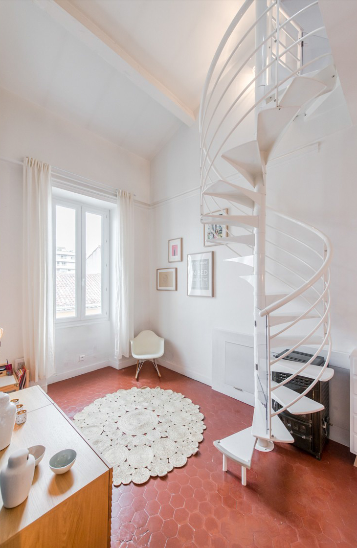 C’est dans le quartier d’Endoume que se trouve ce duplex niché dans un ancien immeuble Marseillais. Cet espace de 106m² a été entièrement rénové pour offrir un lieu qui mêle éléments d’origine et touches contemporaines. Tomettes, plafond cathédrale, poutres apparentes… le cachet est indéniable !
