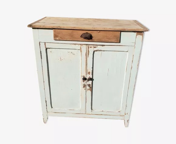 Buffet parisien patiné, Selency / Suspension en rotin, La redoute / Coussin gaze de coton, Blanc cerise