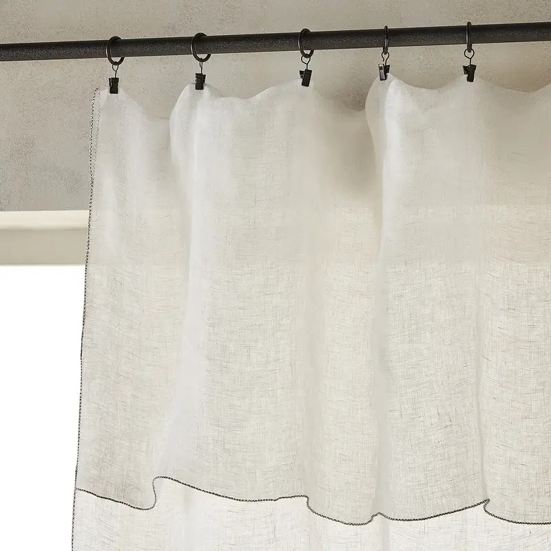 - Oubliez la traditionnelle tringle à rideau et adoptez des systèmes alternatifs, comme un filin en métal associé à des anneaux à pinces.