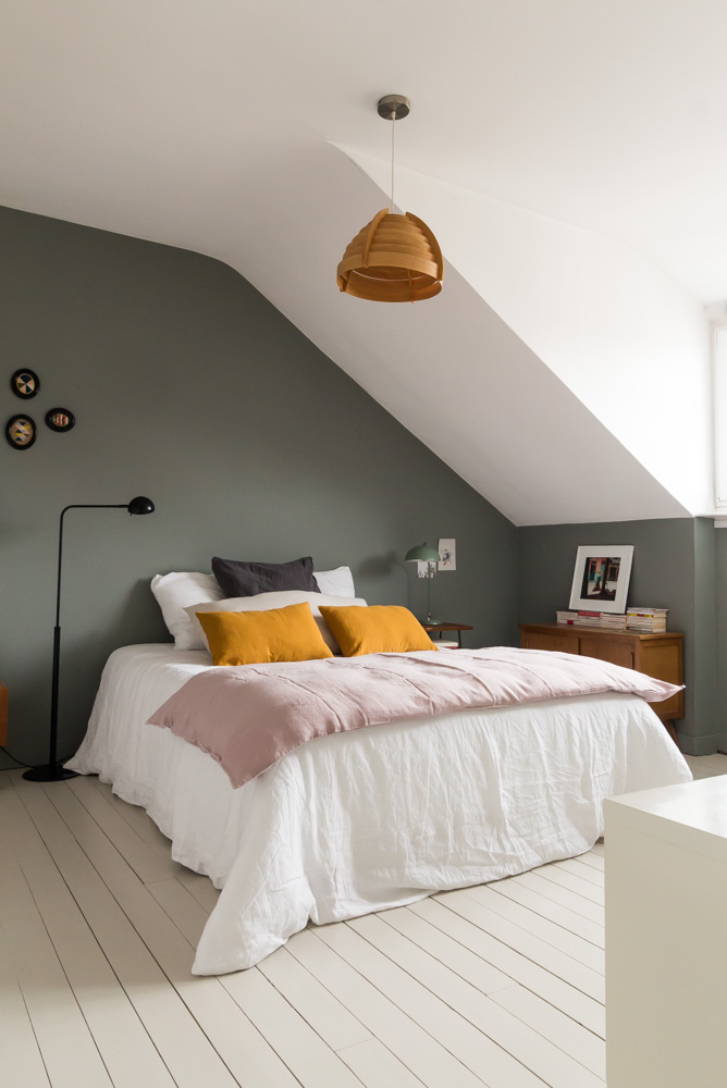 On pense souvent à mettre des voilages au fenêtres pour tamiser la lumière et se protéger des regards indiscrets. Mais les rideaux, les vrais, sont tout aussi importants, et particulièrement dans la chambre ! Les rideaux épais ne sont pas uniquement intéressants pour l’habillage et l’occultation supplémentaire qu’ils offrent. Ils permettent également de cacher la vision des volets fermés le soir. Et cela change tout ! C’est un élément qu’on retrouve dans toutes les jolies chambres d’hôtel et pour cause : l’atmosphère en est complètement transformée.