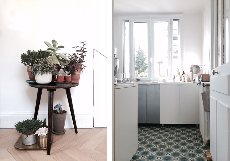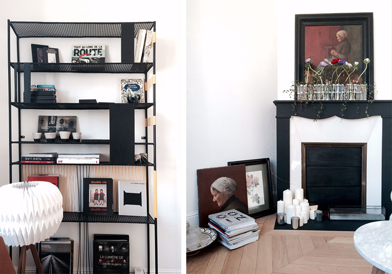 Un joli parquet chevron à la finition brute, une ancienne cheminée noire suffisent à donner le ton de l’élégance. Côté meubles, Christine a sélectionné des pièces du design scandinave actuel comme ces tables basses de chez Fleux ou ces fauteuils House Doctor, mais aussi des pièces plus anciennes comme cette superbe bibliothèque du français Mathieu Matégot. Dans la cuisine, la simplicité des meubles Ikea contraste avec l’authenticité des carreaux de ciment pour former un joli mélange.