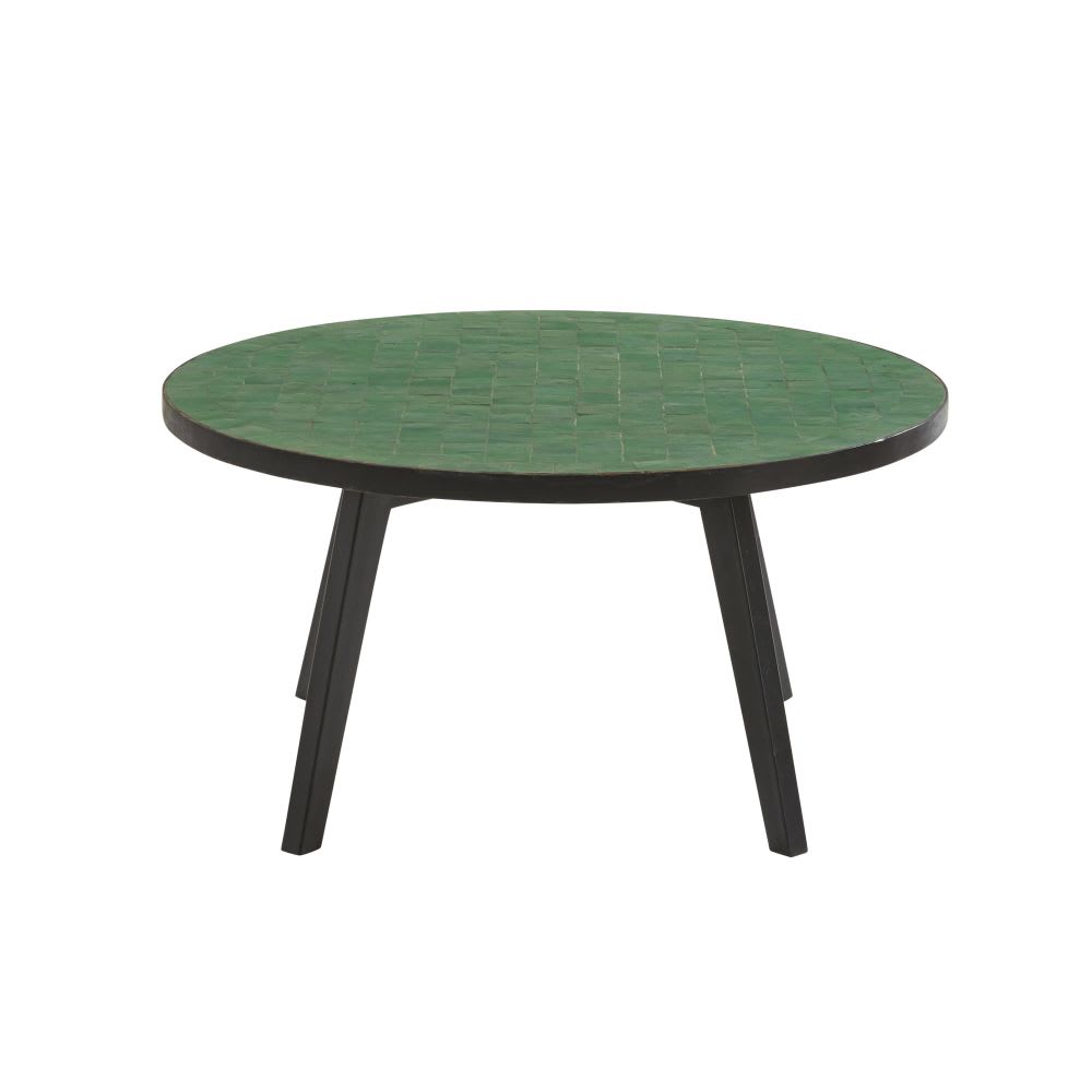Imaginez : le soleil et la végétation en écrin pour un salon d’été…. le terrain de jeu parfait pour oser une association de couleurs vitaminée ! Pour cette première ambiance, j’ai eu envie d’associer des roses terracotta, des jaunes tirant sur le moutarde et un peu de vert pour calmer le jeu. Les roses et les jaunes, c’est un mariage osé mais qui fonctionne pourtant tellement bien ! Pour réaliser cette inspiration, je suis partie de ce bain de soleil coloré qui fait partie de mes gros coups de cœur chez maison du monde pour cet été. J’ai réveillé tout ça avec un jaune soutenu, une couleur incontournable pour les envies d’été ensoleillé. La jolie table basse de jardin verte au plateau en zellige fait également partie de mon top 3 pour cette sélection : la touche parfaite pour un clin d’œil aux patios orientaux.